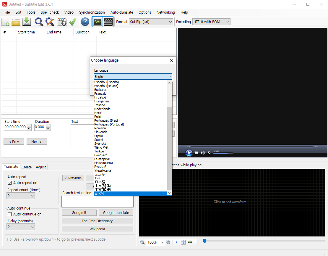 오른쪽 화면에서 영상과 함께 자막을 볼수 있어서 편하다